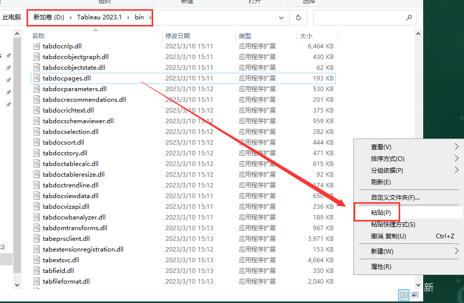 在软件安装目录位置下,找一个空白位置,鼠标右键点击【粘贴】